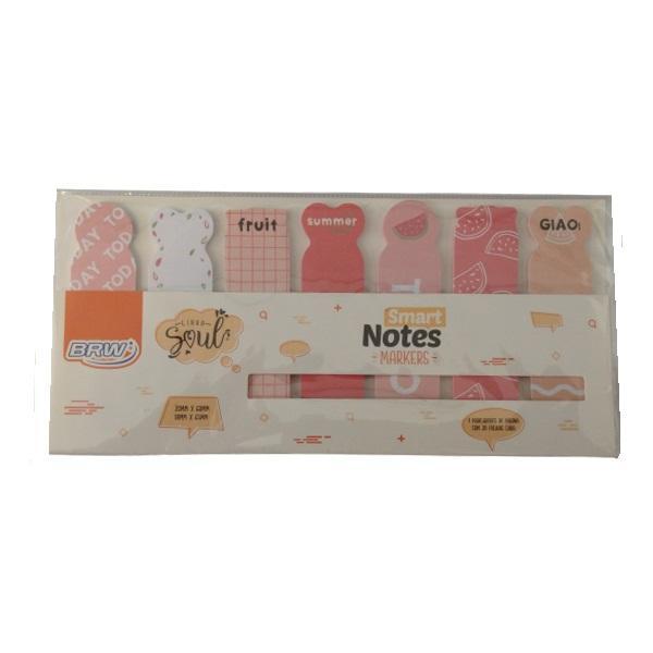 7 marcadores de pagina com 140 folhas cada.